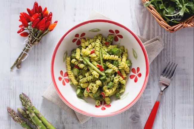 È la celebrazione di ingredienti che, nel loro incontro, raccontano una storia di semplicità e intensità. La rucola, con la sua pepata personalità, domina un pesto che non è semplice condimento ma l'anima stessa del piatto, mentre gli asparagi, saltati per mantenere una piacevole croccantezza, offrono un contrappunto dolce e terroso.