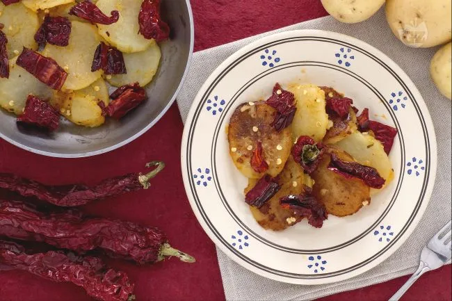Un contorno rustico e ricco di carattere, che porta in tavola i profumi intensi e i sapori autentici della Basilicata. La morbidezza delle patate, dorate e croccanti in superficie, si sposa con la croccantezza sfrigolante e il gusto leggermente affumicato dei peperoni cruschi, creando un contrasto di consistenze irresistibile.
