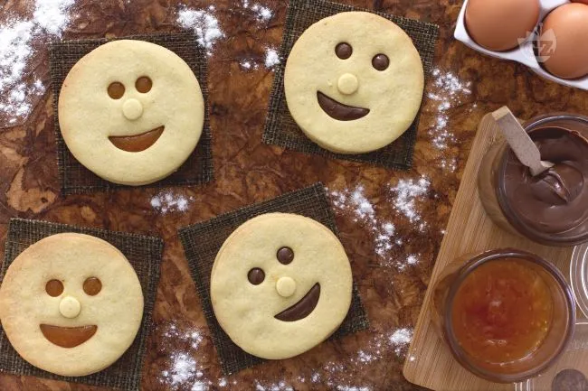 Queste faccine di frolla sono un invito al sorriso e alla spensieratezza, perfette per trasformare una semplice merenda in un momento di allegria condivisa. La pasta friabile e profumata di vaniglia racchiude un cuore goloso, dove la cremosità del cioccolato sposa l'acidulo fruttato della confettura, creando un contrasto piacevole e ben bilanciato.