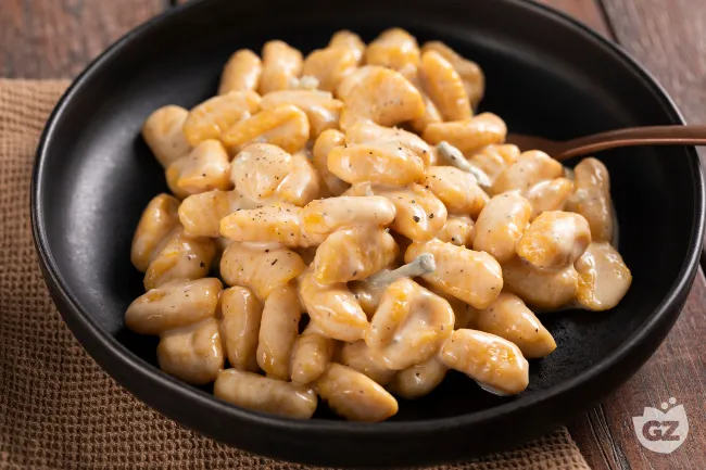 Gli gnocchi di zucca con crema di gorgonzola offrono un'esperienza di sapori autunnali, dove la dolcezza delicata della zucca si fonde con l'intensità cremosa e piccante del formaggio erborinato. La consistenza soffice e vellutata degli gnocchi fatti in casa incontra una salsa avvolgente, creando un contrasto perfetto tra il retrogusto leggermente amarognolo del gorgonzola e la nota terrosa della noce moscata.