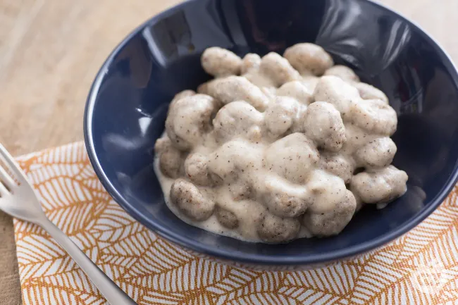 Gli gnocchetti, dalla superficie leggermente ruvida, catturano perfettamente la salsa vellutata, mentre il pepe nero aggiunge una nota piccante e aromatica che risveglia il palato.