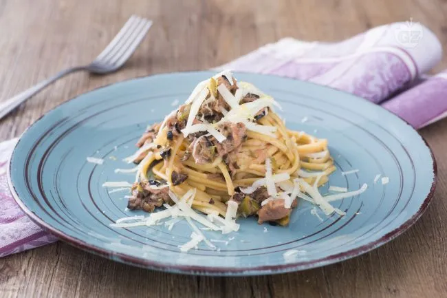 Il trito di capperi dissalati e olive nere e verdi regala note salmastre e una piacevole punta di acidità, bilanciata dalla grattugiatura finale di pecorino semi-stagionato e dalla scorza di limone non trattato. Quest'ultima aggiunge una freschezza aromatica che alleggerisce l'insieme e ne esalta la complessità.