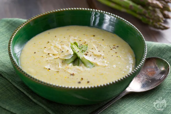Una vellutata che incarna l'essenza della primavera, dove la dolcezza delicata degli asparagi si fonde in una cremosità avvolgente e setosa. La consistenza è liscia e vellutata, con un profumo erbaceo e fresco che invita al primo cucchiaio.