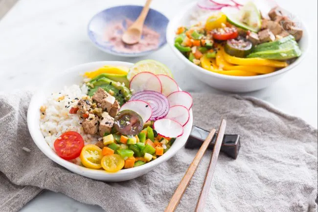 Un piatto unico vibrante e bilanciato che reinterpreta la tradizione hawaiana in chiave vegetariana, offrendo un'esplosione di colori, consistenze e sapori in ogni boccone. La base di riso integrale si combina con il tofu marinato in salsa di soia e lime, verdure croccanti saltate e la dolcezza fresca di mango e avocado.