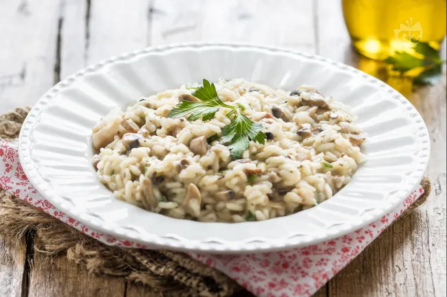 Un risotto che incarna l'essenza dell'autunno, dove la cremosità avvolgente del riso Carnaroli incontra la rusticità dei funghi champignon e il sapore deciso della pancetta tesa. La mantecatura finale con burro e Grana Padano regala una consistenza setosa e un profondo gusto umami, bilanciato dalla freschezza del prezzemolo tritato.