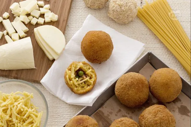 La preparazione si basa su ingredienti di qualità che si fondono in un equilibrio perfetto: lo zafferano dona un colore dorato intenso e un aroma inconfondibile alla pasta, mentre il ragù, lentamente stufato con vino rosso e concentrato di pomodoro, sviluppa una profondità di sapore che si sposa con la dolcezza dei piselli. La scamorza, sciogliendosi durante la frittura, crea filanti irresistibili che legano tutti gli elementi.