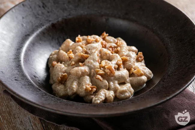 Gli gnocchi con crema alle noci offrono un'esperienza di sapori rustici e raffinati, dove la delicatezza della pasta fresca incontra l'intensità cremosa e tostata di un pesto alle noci. La consistenza morbida e vellutata degli gnocchi fatti in casa si sposa perfettamente con la ricchezza oleosa e il profumo persistente della frutta secca, creando un primo piatto avvolgente e soddisfacente.