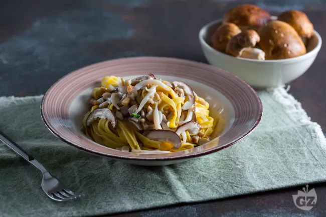 Un primo piatto che incarna l'essenza dell'autunno, dove il profumo intenso e terroso dei funghi porcini dialoga con la delicatezza marina delle seppioline. Le tagliatelle all'uovo, con la loro consistenza robusta e porosa, catturano il sugo ricco e saporito, creando un equilibrio perfetto tra terra e mare. La preparazione valorizza ogni ingrediente: i porcini, puliti con cura per preservarne l'aroma, vengono rosolati per esaltarne la profondità, mentre le seppie, aggiunte in due momenti distinti, regalano note diverse, dai ciuffi tritati che fondano il fondo di cottura alle striscioline che restano tenere e succose.