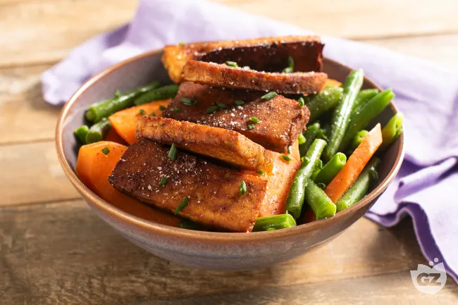 Il tofu in padella è una proposta vegana che conquista per il contrasto di consistenze: una crosta dorata e croccante racchiude un cuore tenero e morbido. La salsa di soia, sapientemente dosata, regala un fondo sapido e umami che avvolge ogni fetta senza appesantirla, mentre l'erba cipollina fresca aggiunge una nota erbacea e pungente che risveglia il palato.