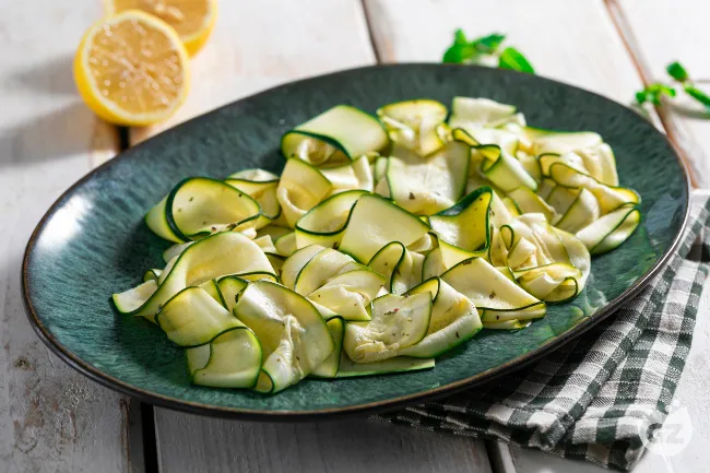 Le zucchine marinate crude offrono un'esplosione di freschezza e sapori mediterranei, perfetta per aprire un pasto estivo. La loro consistenza, morbida ma con una leggera resistenza, si sposa con l'acidità brillante del limone e la nota pungente dell'aglio, bilanciata dalla rotondità dell'olio extravergine.