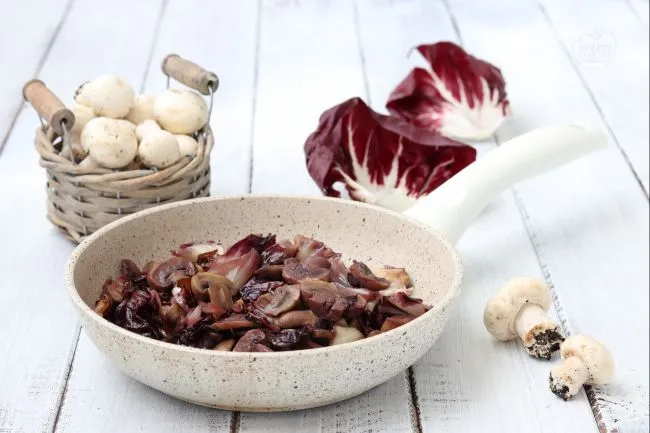 La magia avviene in padella, dove i funghi champignon, cedendo la loro acquosa carnosa, si caramellano leggermente, mentre il radicchio perde parte della sua astringenza per guadagnare una croccantezza vellutata e un colore rubino intenso. Il vino rosso, sfumato al momento giusto, non si limita a deglassare: evapora lasciando dietro di sé un'essenza fruttata e complessa che lega i due protagonisti, mitigando l'amaro con una nota alcolica elegante e creando un fondo ricco e profumato.