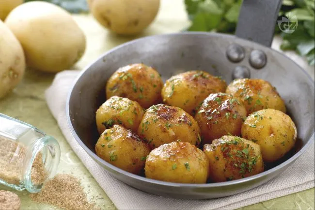 trasforma lo zucchero di canna e il burro in un caramello vellutato che avvolge ogni patatina, creando una crosticina lucida e appiccicosa che contrasta piacevolmente con la polpa tenera all'interno.