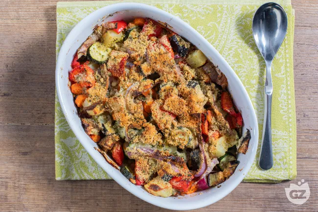 Un contorno che trasforma un semplice mix di verdure in un piatto ricco e invitante, dove la croccantezza dorata del topping si fonde con la morbidezza delle verdure cotte al vapore. La gratinatura finale al grill regala un profumo intenso di formaggio e pangrattato tostato, creando un contrasto di consistenze perfetto.