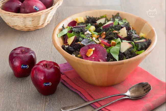 Questa insalata invernale è un'esplosione di colori e consistenze che conquista al primo boccone. La dolcezza croccante delle mele si sposa con la terra delle barbabietole crude, mentre il cavolo riccio e il pak choi regalano una nota erbacea e fresca. I crostini di pane speziati al timo e le mandorle tostate aggiungono un piacevole contrasto croccante, bilanciato dalla cremosità delicata del Quartirolo.