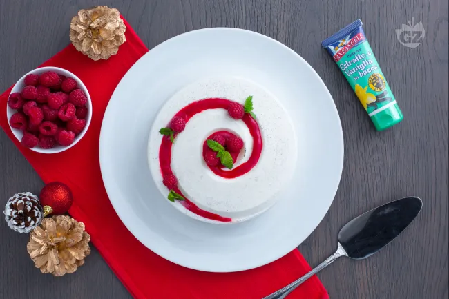 Una torta mousse alla vaniglia che incanta per l'eleganza delle sue forme e la delicatezza dei sapori. La consistenza è un perfetto equilibrio tra la morbidezza ariosa della mousse, che si scioglie in bocca rilasciando l'aroma intenso della vaniglia, e la base croccante al cacao che offre un piacevole contrasto di texture. La decorazione con lamponi frullati e foglie di menta aggiunge una nota di freschezza e un tocco di colore vibrante che rende il dessert scenografico.