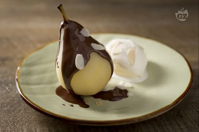 Le pere alla bella Elena sono un dessert elegante che unisce la delicatezza della frutta cotta all'intensità del cioccolato fondente. La morbidezza calda delle pere, aromatizzate dalla cannella, incontra la copertura lucida e vellutata del cioccolato, creando un contrasto di consistenze e temperature che conquista al primo assaggio.