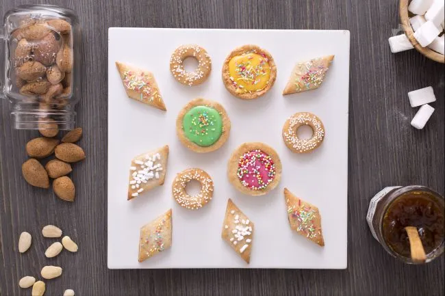 La farina di mandorle, tostata e macinata finemente, regala un profumo intenso e una consistenza vellutata che si scioglie in bocca. Lo sciroppo di glucosio nel fondente assicura una glassatura liscia e brillante, mentre i coloranti alimentari e gli zuccheri glitterati trasformano questi dolci in piccole opere d'arte, perfette per la tavola festiva.