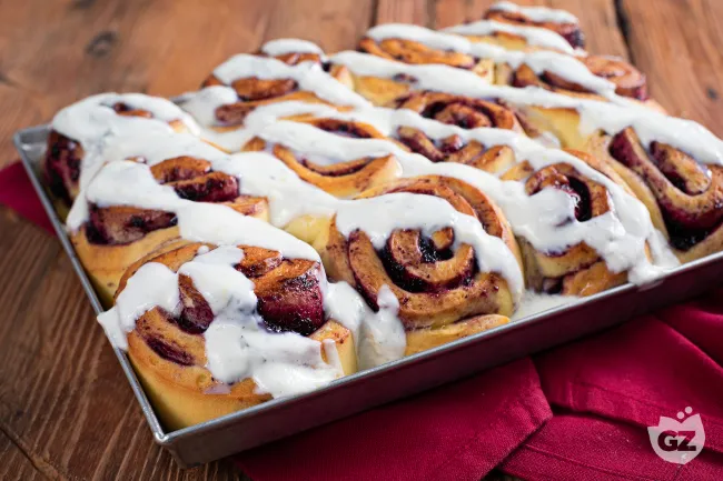 Le girelle ai mirtilli sono un lievitato dolce che conquista per la sua morbidezza avvolgente e il cuore goloso di confettura di frutti di bosco. Ogni boccone offre un equilibrio perfetto tra la pasta soffice e leggermente burrosa e l'intensità agrodolce del ripieno, coronato da una glassa fresca e cremosa.