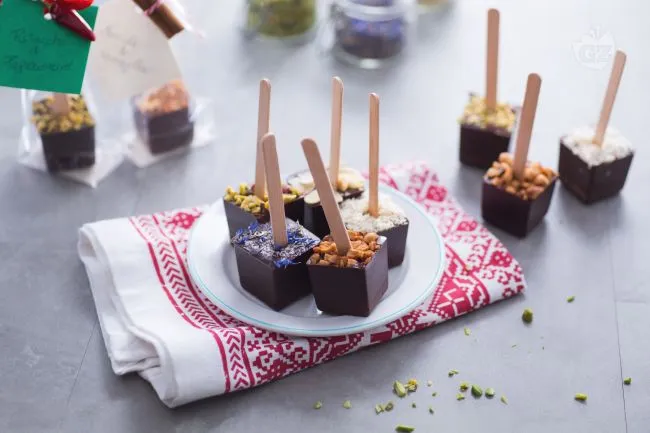 Questa cioccolata calda su stecco è un'esperienza sensoriale che unisce la ricchezza del cioccolato fondente alla possibilità di personalizzare ogni tazza con combinazioni aromatiche sorprendenti. Ogni cubetto, infilzato su un bastoncino, si scioglie lentamente nel latte caldo rilasciando una cremosità vellutata e intensa, arricchita da note croccanti e speziate che riscaldano il palato.