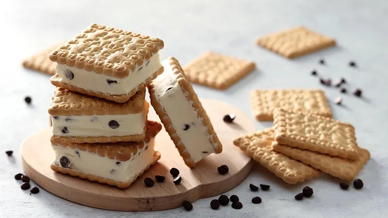 Un invito alla pausa golosa che trasforma l'essenza del gelato in un oggetto da mordere. Questa creazione unisce l'anima cremosa del dessert artigianale alla rustica carezza del biscotto, promettendo un'esperienza tattile e gustativa che sfida le stagioni. È la risposta elegante alla voglia di freddo che non rinuncia al piacere croccante.