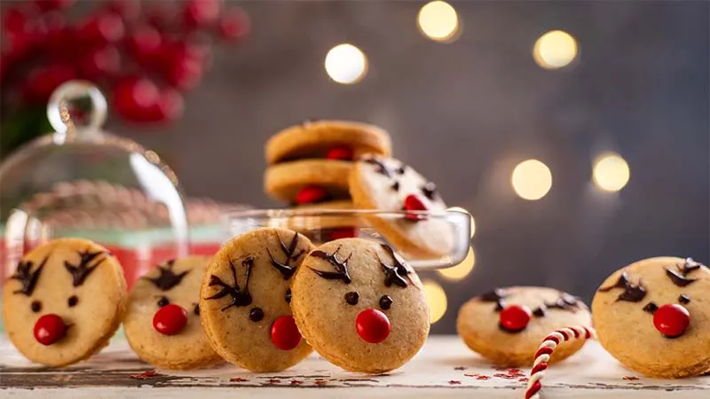 I biscotti renna sono un dolcetto natalizio dal sapore caldo e avvolgente, perfetto per creare un'atmosfera festosa. La frolla friabile e leggermente speziata si sposa con la golosità del cioccolato fondente, mentre la decorazione con le caramelle colorate li rende irresistibili agli occhi di grandi e piccini.