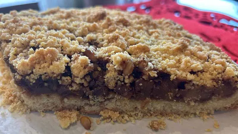 Questa sbriciolata strudel è un dolce che unisce la rustica fragranza della frolla sbriciolata alla ricchezza aromatica del ripieno di mele classico. Il risultato è un dessert dal contrasto di consistenze perfetto: una base compatta e friabile che sostiene un cuore morbido e succoso, avvolto da una crosta dorata e granulosa. Le mele Golden, cotte fino a diventare tenere, si sposano con la dolcezza caramellata dello zucchero di canna e il calore della cannella.