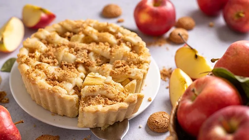 Questa crostata unisce la rustica fragranza della pasta frolla alla delicatezza di una crema agli amaretti, arricchita dalla freschezza delle mele Fuji. Il risultato è un dolce dal contrasto perfetto tra la base friabile, il ripieno vellutato e leggermente alcolico e la nota fruttata e croccante della frutta in superficie.
