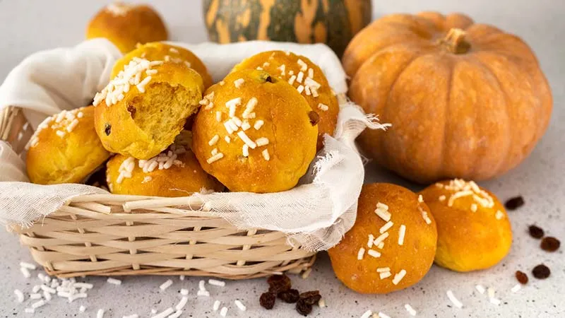La zucca, cotta al vapore, si scioglie nell'impasto regalando una nota dolce e umida, mentre l'uvetta ammollata nel rum aggiunge piccoli scoppi di sapore intenso e una piacevole consistenza. Il contrasto tra la granella di zucchero croccante in superficie e la mollica tenerissima all'interno crea un'esperienza sensoriale completa.