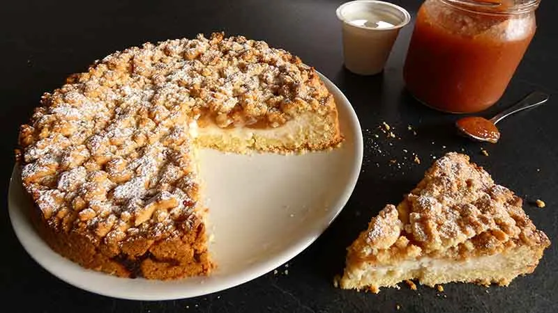 La sbriciolata con ricotta e marmellata è un dolce rustico e invitante, dove la delicatezza della crema di ricotta si sposa con l'intensità fruttata della confettura, il tutto racchiuso in una base friabile e una copertura croccante. La consistenza contrastante tra la morbida farcitura e la sbriciolatura dorata crea un'esperienza sensoriale piacevole e ricca di profumi.
