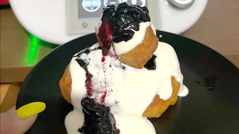 La ricotta conferisce all'impasto una consistenza soffice e umida, mentre la scorza di limone e la vanillina regalano un profumo delicato e invitante. La panna acida, fredda e leggermente acidula, crea un equilibrio perfetto con il calore e la dolcezza delle ciambelle, trasformando ogni porzione in un dessert strutturato e armonioso.