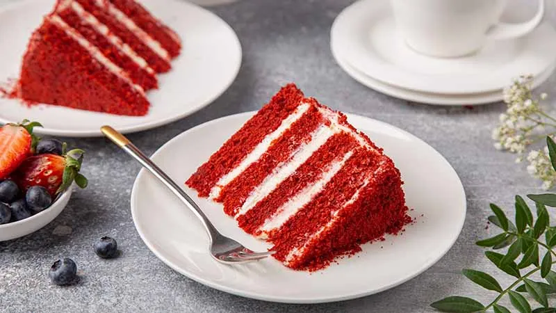 La Red Velvet è un'icona della pasticceria americana, un trionfo di eleganza e golosità che conquista con il suo colore rosso intenso e il contrasto tra la morbidezza vellutata della base e la freschezza della farcia al formaggio. La sua consistenza è incredibilmente soffice e umida, mentre il profumo di vaniglia e cacao, seppur leggero, prepara il palato a un'esperienza ricca e appagante.