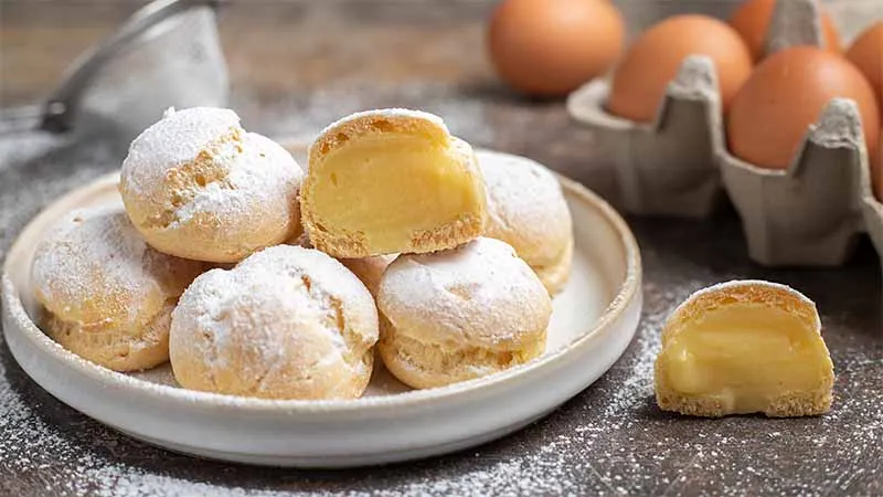 La crema pasticcera, arricchita dalla scorza di limone e dalla vaniglia, offre una nota agrumata e profumata che bilancia la dolcezza senza risultare stucchevole. La pasta choux, preparata con un impasto semplice ma tecnico, si gonfia in forno creando la caratteristica cavità interna, pronta per essere riempita.