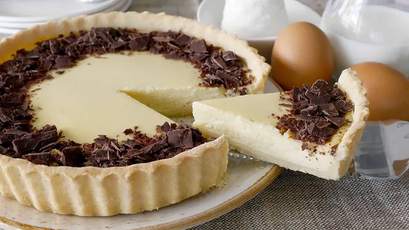 La magia risiede nel dialogo tra la ricotta, con la sua nota granulosa e fresca che ricorda i formaggi da tavola, e la crema pasticcera, che la avvolge in una setosità dolce e avvolgente. È proprio questo contrasto a definire il carattere del dolce: non una semplice somma di ingredienti, ma una fusione dove il cioccolato fondente in scaglie interviene come un finale a sorpresa, una punta di amaro che taglia la dolcezza e regala profondità.