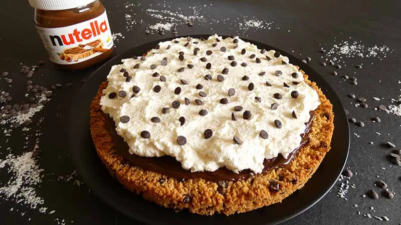 perfezione con la densità della Nutella e la leggerezza della panna montata aromatizzata al cocco, creando un dessert ricco e appagante. La base, arricchita da gocce di cioccolato, offre una nota croccante che si contrappone alla morbidezza degli strati superiori.
