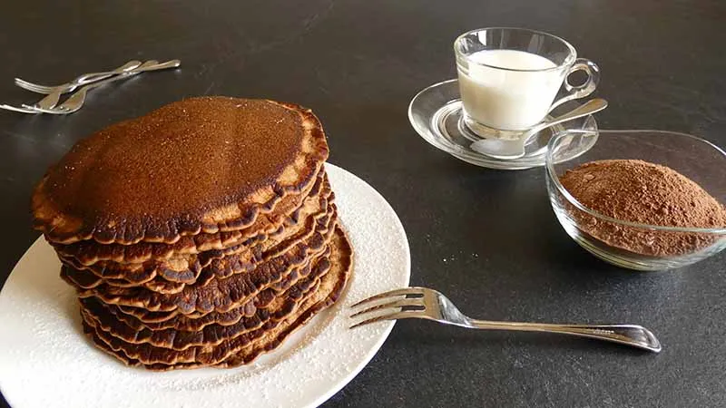 I pancake al cacao sono una versione golosa e invitante della classica colazione americana, dove la morbidezza soffice dell'impasto si sposa con l'aroma intenso e avvolgente del cacao. La pastella, arricchita, cuoce in padella formando una superficie dorata e leggermente croccante che racchiude un interno tenero e umido, dal profumo dolce e familiare.