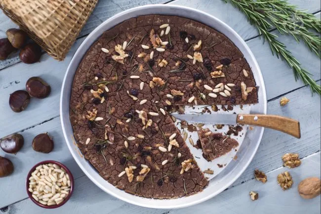 Il castagnaccio toscano è un abbraccio autunnale che parla di terra e tradizione. Non è un semplice dolce, ma un'esperienza rustica ed elegante, dove la dolcezza profonda e terrosa della castagna si fa strada tra note croccanti e tocchi aromatici, promettendo un viaggio sensoriale genuino e memorabile. La sua bellezza risiede nell'equilibrio audace: l'umido, compatto cuore di farina di castagne incontra una superficie leggermente screpolata e dorata, come un campo dopo la pioggia.