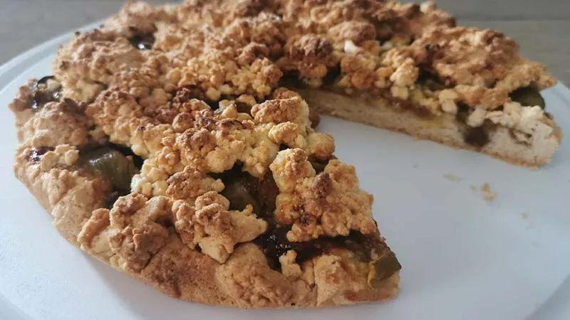 La sbriciolata ai fichi è un dolce rustico che incarna l'essenza dell'estate, con una base friabile che si contrappone alla morbida cremosità della marmellata e alla succosità dei frutti freschi. Il risultato è un equilibrio perfetto tra la croccantezza della frolla sbriciolata e l'intensità dolce e terrosa dei fichi, arricchita da una nota agrumata leggera e fresca.