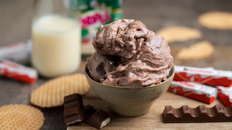 Un gelato cremoso e irresistibile che cattura il sapore iconico del cioccolato Kinder in una preparazione casalinga. La consistenza è vellutata e densa, con una scioglievolezza che ricorda i dessert artigianali, mentre il profumo di vanilla e cacao avvolge il palato in un abbraccio goloso.