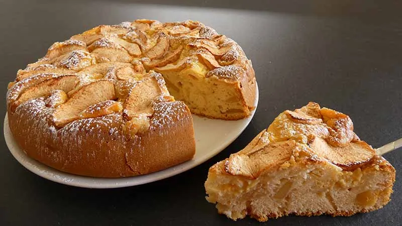 Una torta soffice e profumata che unisce la dolcezza delle mele alla cremosità di una delicata crema pasticcera, in una versione leggera che rinuncia al burro. La base umida e aromatica, arricchita con cannella e scorza di limone, accoglie uno strato di crema vellutata e una copertura di fettine di mela caramellata, per un risultato che conquista al primo morso.