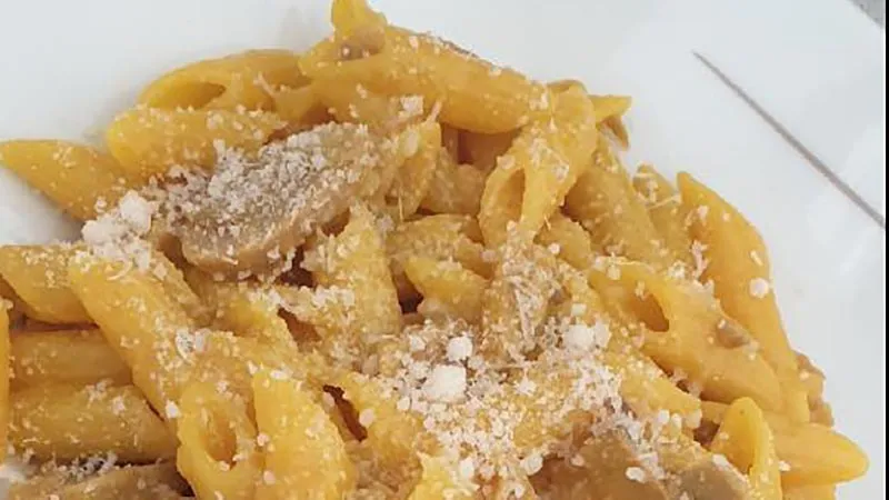 Un primo piatto che unisce la rusticità dei funghi alla nobiltà dello zafferano, in una preparazione cremosa e avvolgente. La tecnica di cottura 'risottata' conferisce alla pasta una consistenza unica, con i chicchi che rilasciano amido creando una salsa vellutata e intensamente profumata. I funghi, saltati brevemente, mantengono una piacevole consistenza carnosa che contrasta con la cremosità del fondo, mentre lo zafferano impregna il tutto di un colore dorato e di un aroma inconfondibile, terroso e leggermente amarognolo.