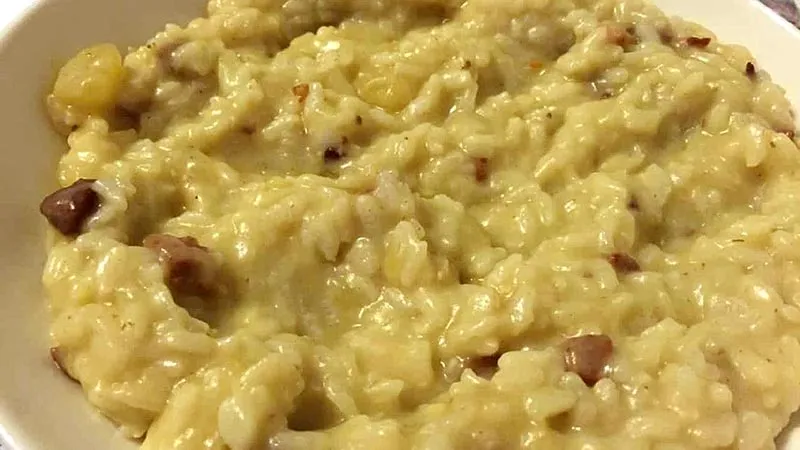 Un risotto che unisce la cremosità del riso alla rustica consistenza delle patate, arricchito dal sapore intenso e affumicato della pancetta. Il risultato è un piatto confortevole e avvolgente, perfetto per una cena in famiglia o per riscaldare una serata d'autunno.