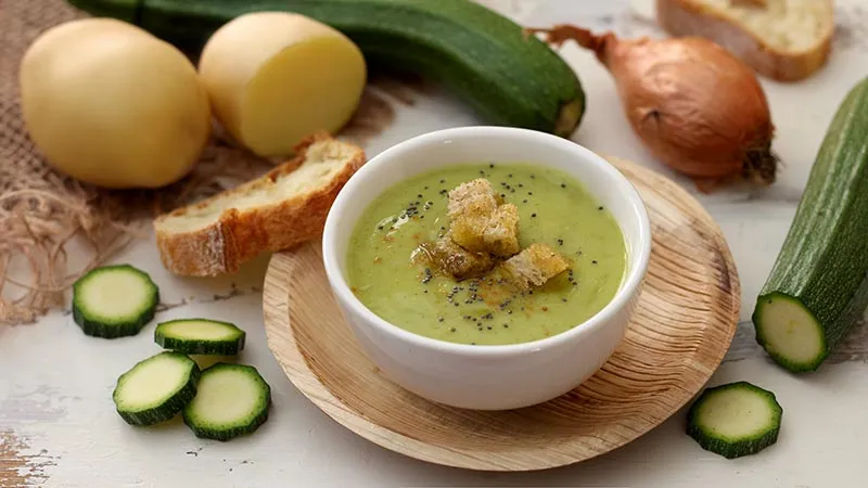 Una vellutata che incanta per la sua setosità avvolgente e il sapore delicatamente rustico. La patata dona corpo e cremosità, mentre la zucchina apporta una nota fresca e leggermente erbacea, bilanciata dalla dolcezza dello scalogno stufato. Il filo d'olio a crudo in fase di impiattamento esalta i profumi e regala un tocco di personalità, aprendo la strada a infinite variazioni con spezie o crostini profumati.