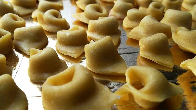 I tortellini fatti in casa racchiudono in un piccolo involucro di pasta sottile tutta la ricchezza di un ripieno saporito e tradizionale. La sfoglia, liscia e omogenea, avvolge un cuore morbido e profumato di carni selezionate e aromi, promettendo un'esperienza autentica e gratificante ad ogni boccone.