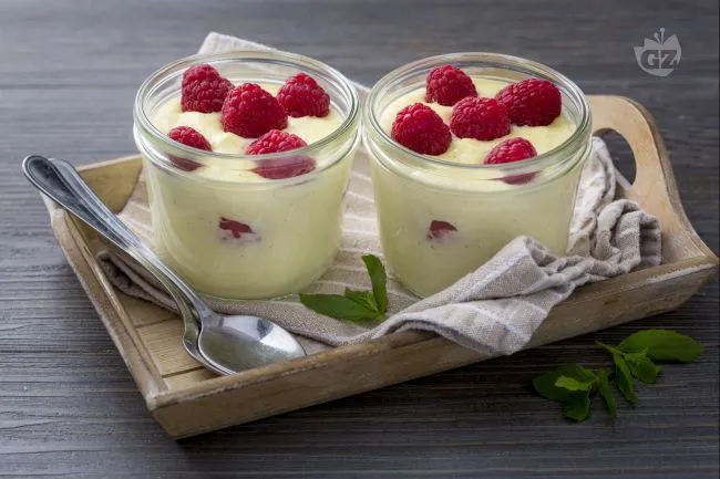 Il vanilla pudding è un dessert classico che conquista per la sua cremosità vellutata e il profumo intenso della vaniglia. La sua consistenza morbida e avvolgente si scioglie in bocca, offrendo un'esperienza di puro comfort dolce, arricchita dalla freschezza acida dei lamponi che creano un contrasto perfetto. La bacca di vaniglia, con i suoi semini neri, dona un aroma profondo e autentico, mentre l'amido di mais garantisce una densità setosa senza bisogno di gelatina.