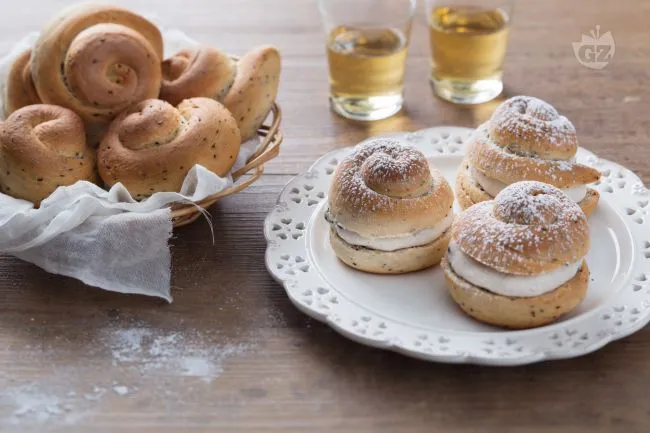 I biscotti di San Martino sono una delizia siciliana che racchiude in sé la tradizione e la festa. Si presentano come morbidi lievitati a forma di spirale, dalla crosta dorata e leggermente croccante, che racchiudono un cuore cremoso e fresco di ricotta aromatizzata. L'impasto, profumato di anice nero e cannella, offre una nota calda e speziata, mentre la farcitura alla ricotta vaccina, addolcita con zucchero a velo e arricchita da gocce di cioccolato fondente, crea un contrasto perfetto tra la morbidezza della crema e la consistenza del biscotto.
