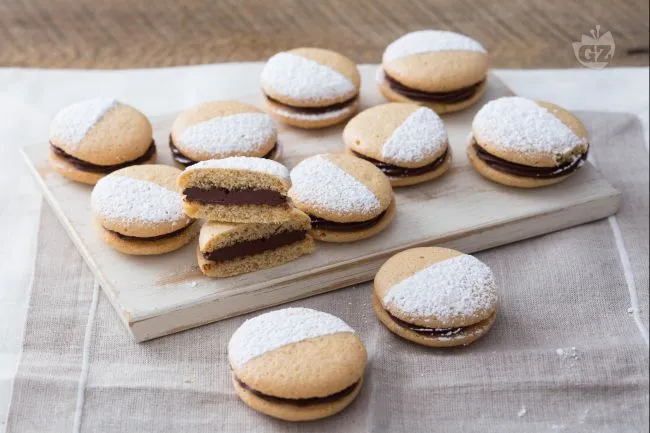 L'impasto, arricchito con caffè preparato con la moka, dona ai biscotti un aroma profondo e autentico, mentre la ganache, realizzata con cioccolato fondente e panna, aggiunge una nota cremosa e vellutata. La spolverata di zucchero a velo, applicata con la tecnica bicolor, completa la presentazione con un tocco di leggerezza e raffinatezza visiva.