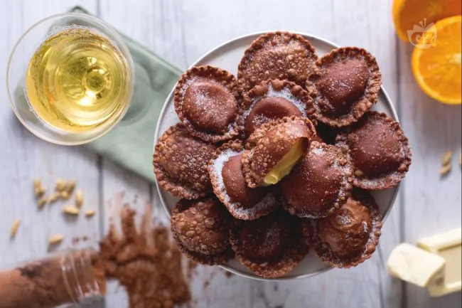 Ideali per concludere una cena importante o per un brunch domenicale, questi ravioli si prestano a essere preparati in anticipo e fritti all'ultimo momento, garantendo un risultato sempre impeccabile. La loro forma regolare e l'aspetto elegante li rendono perfetti anche per un buffet dolce.