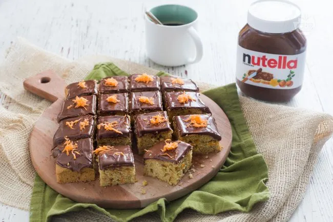 Questa carrot cake offre un equilibrio perfetto tra la rustica dolcezza delle carote e la ricca cremosità della Nutella. La base umida e soffice, arricchita dalla farina di mandorle, si sposa con la copertura liscia e intensamente nocciolata, creando un contrasto di consistenze che conquista al primo morso. La carota grattugiata dona una nota vegetale delicata e una piacevole umidità, mentre il burro fuso garantisce una morbidezza persistente.