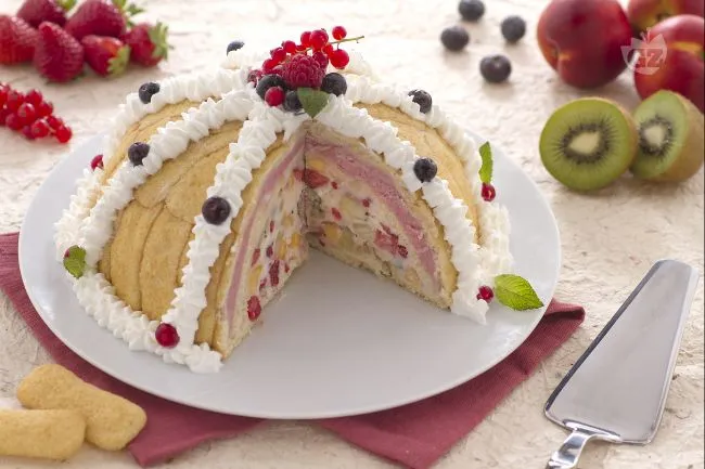 Lo zuccotto Pavesini tuttifrutti è un dessert elegante e rinfrescante, perfetto per concludere una cena estiva o per una festa. La sua struttura a cupola, composta da biscotti Pavesini inzuppati nel latte, racchiude un cuore cremoso di gelato alla panna e fragola, arricchito da un mix di frutta fresca a dadini. Il contrasto tra la morbidezza del gelato, la freschezza della frutta e la leggera consistenza dei biscotti crea un'esperienza sensoriale piacevole e bilanciata.