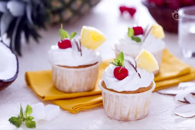 Questi cupcake sono un viaggio sensoriale ai tropici, che cattura l'essenza del celebre cocktail in una delizia monoporzione. La morbidezza del pan di Spagna all'ananas fresco si sposa con una crema al latte di cocco leggera e avvolgente, mentre la decorazione finale aggiunge un tocco di freschezza e colore. Il contrasto tra la dolcezza della frutta sciroppata, la freschezza della menta e la consistenza cremosa rende ogni boccone un'esperienza completa.